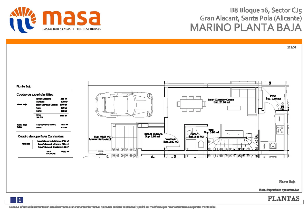 Todas las casas de la urbanización Marino están construidas en casas adosadas, ofreciendo un estilo de vida más independiente con acceso directo desde el exterior. Cada apartamento dispone de una plaza de aparcamiento privada en superficie.