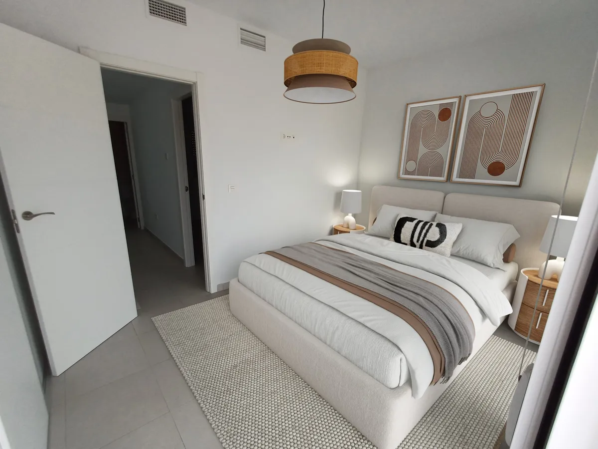 - Apartamento: Marino es una casa de estilo mediterráneo con 2 dormitorios y 2 baños. Cocina y salón semi-independientes con zona de comedor.